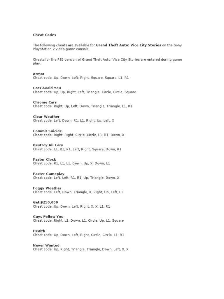 Pc cheats for gta vice city are entered by simply typing in the below codes as they appear.